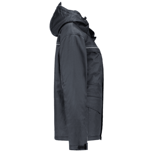 Model: 402007. This fully-padded lightweight jacket is windproof, waterproof and breathable in accordance with EN343 Class 3:3. The parka features taped seams and water-repellent zips, tricot wind cuffs in the sleeves, cuffs adjustable with Velcro, a laminated moulded zip with storm flap at the back, and a chin guard. The reflective piping provides extra visibility. With 4 outside pockets and 2 inside pockets, one of which is ideal for a telephone or MP3 player, incl. cable hole. Not only can you easily attach an ID badge to this work jacket, it's also very practical and it looks great.