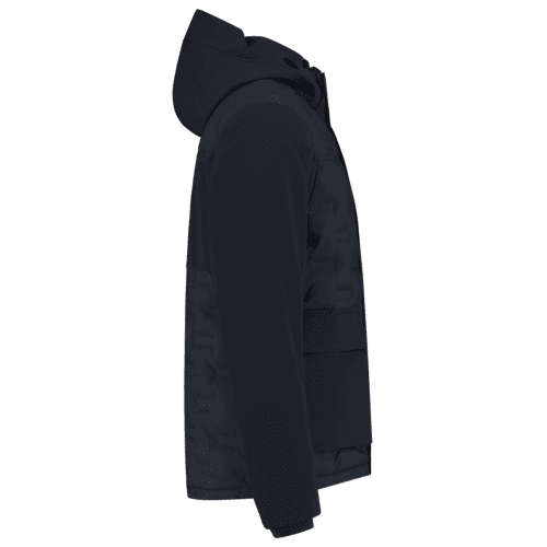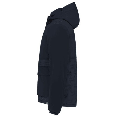 Model: 402711. This puffer jacket features a comfortable rib collar, rib cuffs, detachable hood with side cut-out for extra visibility. Removable rib wind catcher on the inside. The bottom of the work jacket can be adjusted using the internal drawstring. Features two inner pockets, zipped breast pocket and front pockets. With printed zip. This puffer jacket is part of the Rewear package; a fully sustainable and circular clothing package. Material: 100% recycled polyester + TPU membrane. Weight: 175g/m².