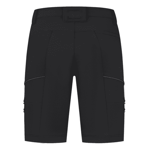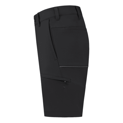 Smart short work trousers Fitted with reflective piping on rear leg and under the pockets, with two slit pockets and two open back pockets. Unisex. Material: 92% recycled nylon/8% spandex. Weight: 265g/m².