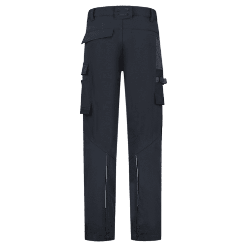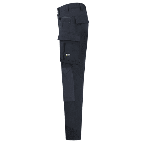 Flexible, lightweight work trousers. Cordura® reinforced knees, thigh pockets and bottoms of trouser legs. The knee pads are zipped for adding knee pads. With extra reflective stripes on the back leg and zipper puller. The work trousers have a double hem for 6 inches extra length. Material: 90% polyamide / 10% elastane. Weight: 260g/m².