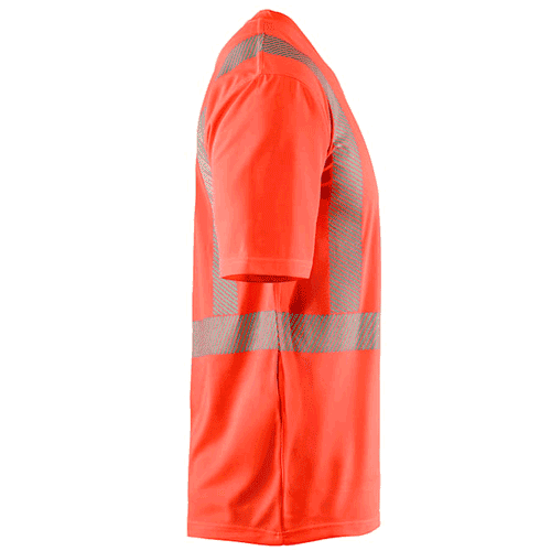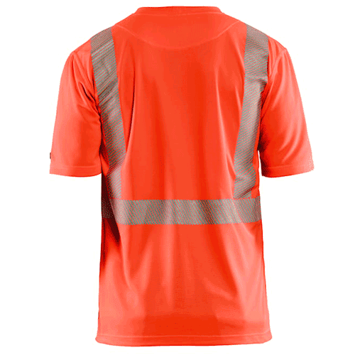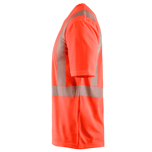 Fijn High Vis T-shirt uitgevoerd met V-hals. Is gemaakt van functioneel gebreide stof voor een optimale bewegingsvrijheid, heeft vocht afvoerende eigenschappen en is tegen UV beschermd (UPF40+). Het T-shirt is gecertificeerd volgens EN 13758-2 UPF 40+ en EN ISO 20471, Klasse 3. Dit T-shirt staat garant voor een goede zichtbaarheid, de reflecterende details op de romp, mouwen en schouders dragen hier aan bij. Materiaal: 100% polyester, birdseye gebreid. Gewicht: 130g/m².