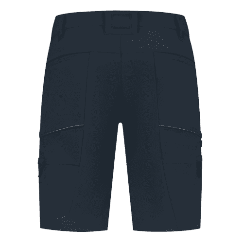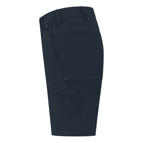 Representatieve korte werkbroek. Voorzien van reflective piping op het achterbeen en onder de zakken, twee steekzakken en twee open achterzakken. Unisex. Materiaal: 92% gerecycled nylon / 8% spandex. Gewicht: 265g/m².