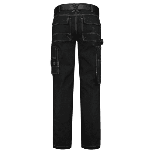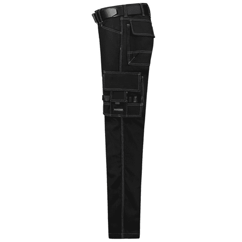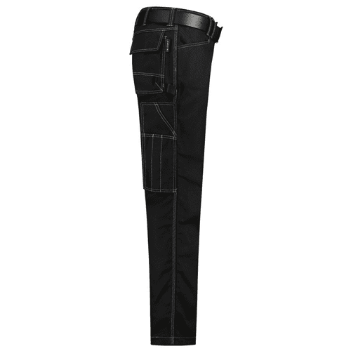 Model: 502007. Kwaliteit: 65% polyester / 35% katoen, Canvas. Low-waist model. Drievoudig gestikte naden. Dijbeenzak (aflsuitbaar) met volop opbergmogelijkheden. Duimstokzak.
