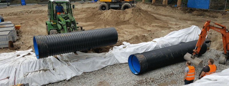 Doordat er geen geotextiel direct om de buis zit èn doordat de binnenzijde van de buis perfect te reinigen is, kan deze voorziening niet verstoppen en zal de Albert Heijn hier met minimaal onderhoud decennia lang ontzorgd zijn van hun hemelwater.