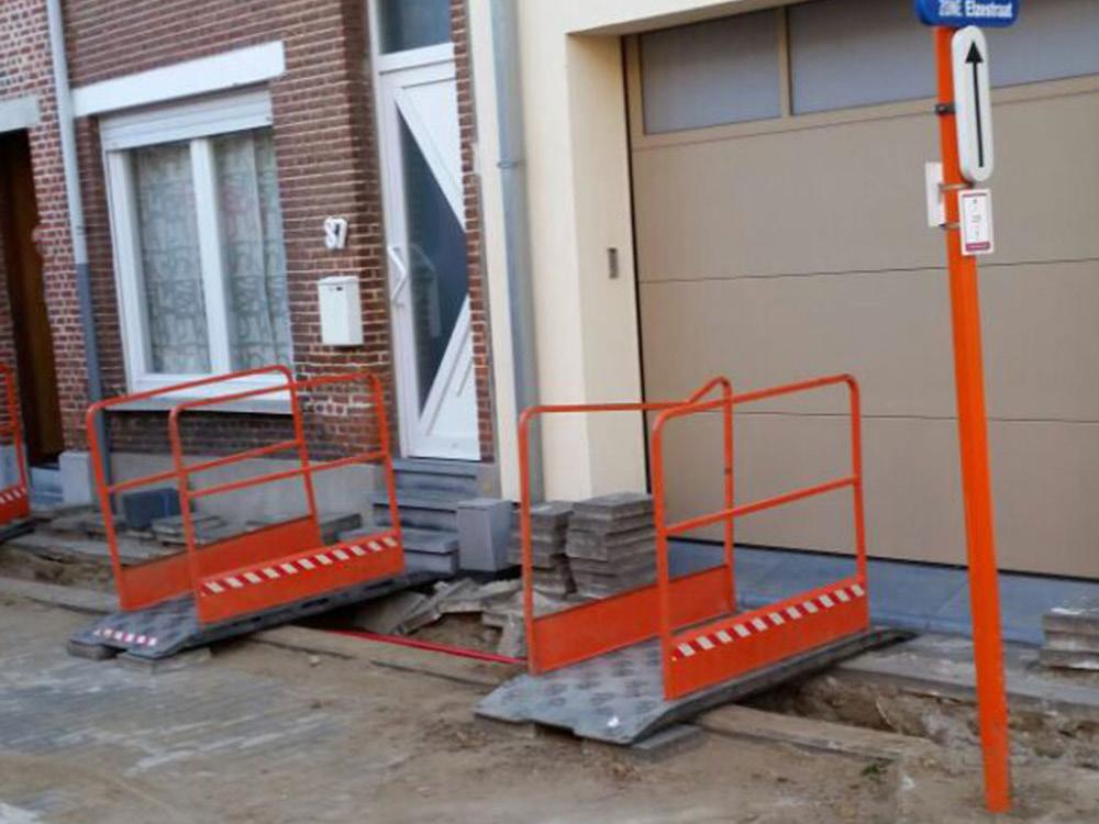 Lichtgewicht loopbrug uit kunststof en leuningen uit metaal, mét anti-slip vloer. Makkelijk te plaatsen en weg te zetten. Eenvoudig te transporteren. Tot één ton draagvermogen. Kan door een stuk (element) tussen te plaatsen snel verbreed worden.